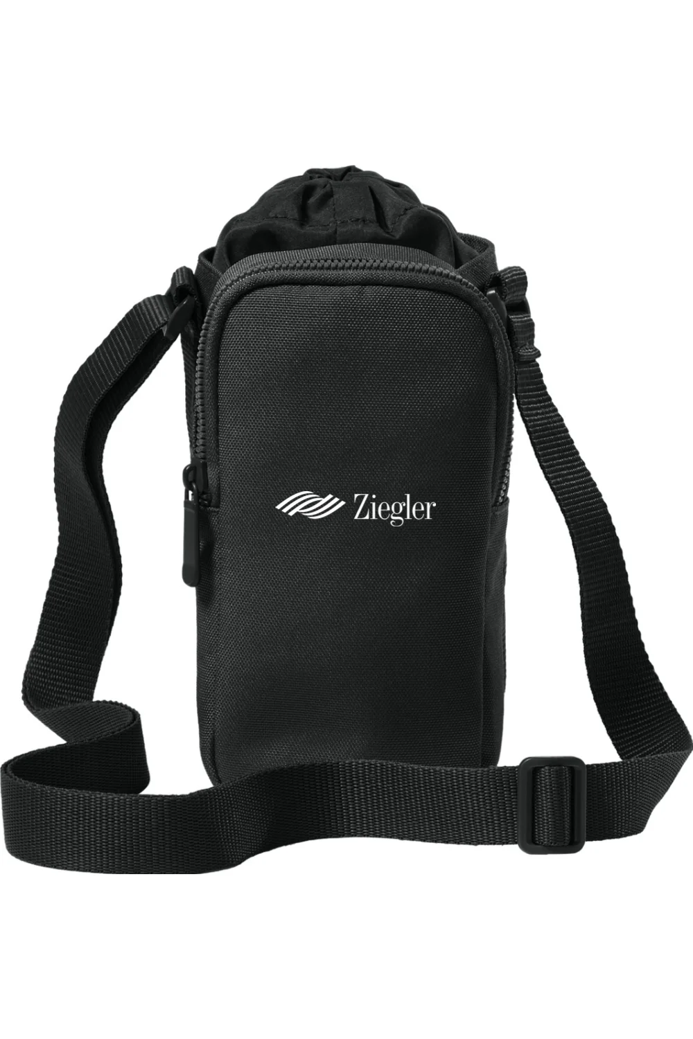 This compact crossbody keeps your essentials close without weighing you down. Made from durable 900D polyester, it features a secure interior bottle sleeve with a cinch closure and a front zip pocket for grab-and-go items.